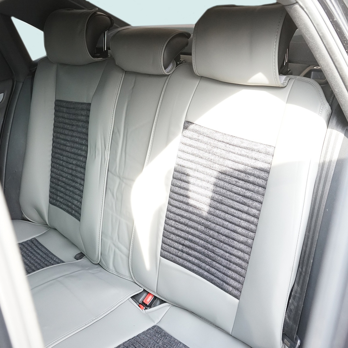 Realizate din piele ecologica de calitate superioara in combinatie cu insertii textile confortabile in zona de contact, husele asigura un echilibru optim intre durabilitate, ventilatie si confort. Materialele sunt rezistente la uzura, usor de curatat si protejeaza eficient scaunele impotriva murdariei si petelor. Setul este compatibil universal si se potriveste majoritatii autoturismelor. Include huse pentru tetiere tip perna si este livrat cu geanta pentru depozitare si transport.
