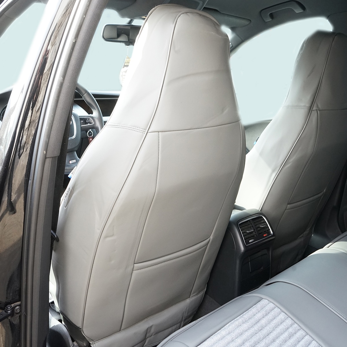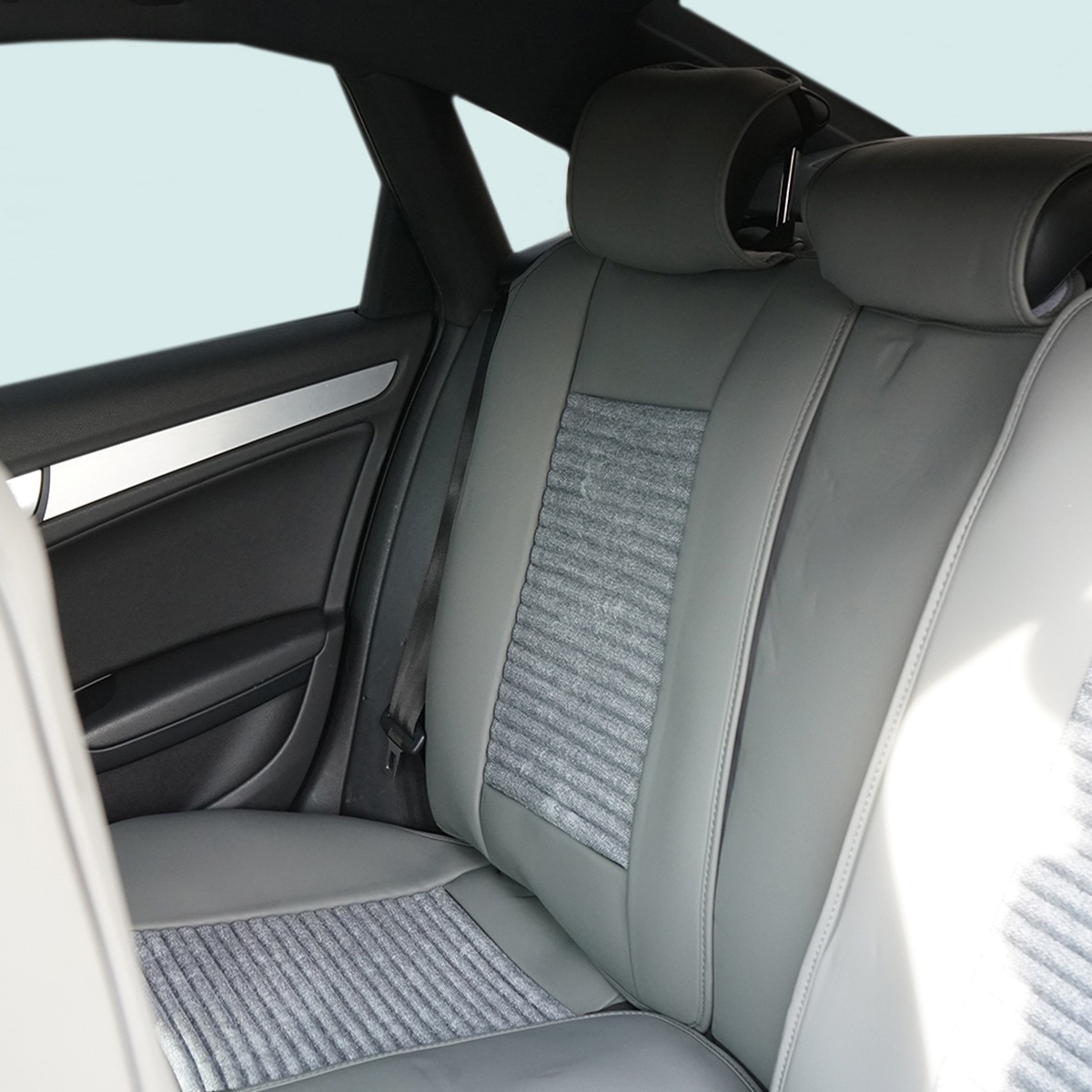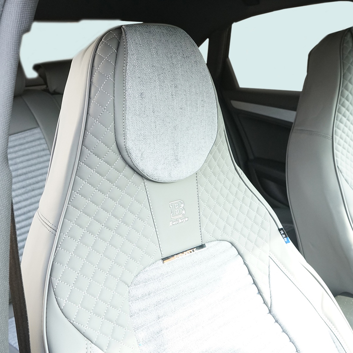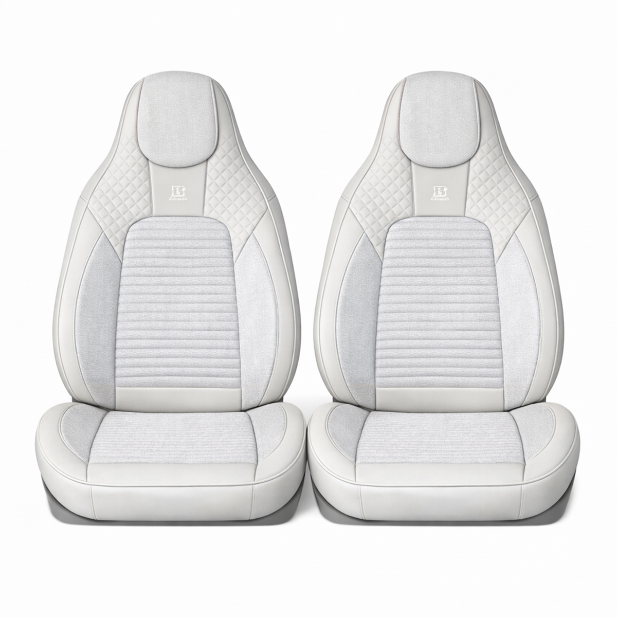 Set huse scaune auto Premium, model BLAZE Luxor, design Sportiv, universale, ergonomice, Piele Ecologica cu insertii textile, culoare Crem/Gri