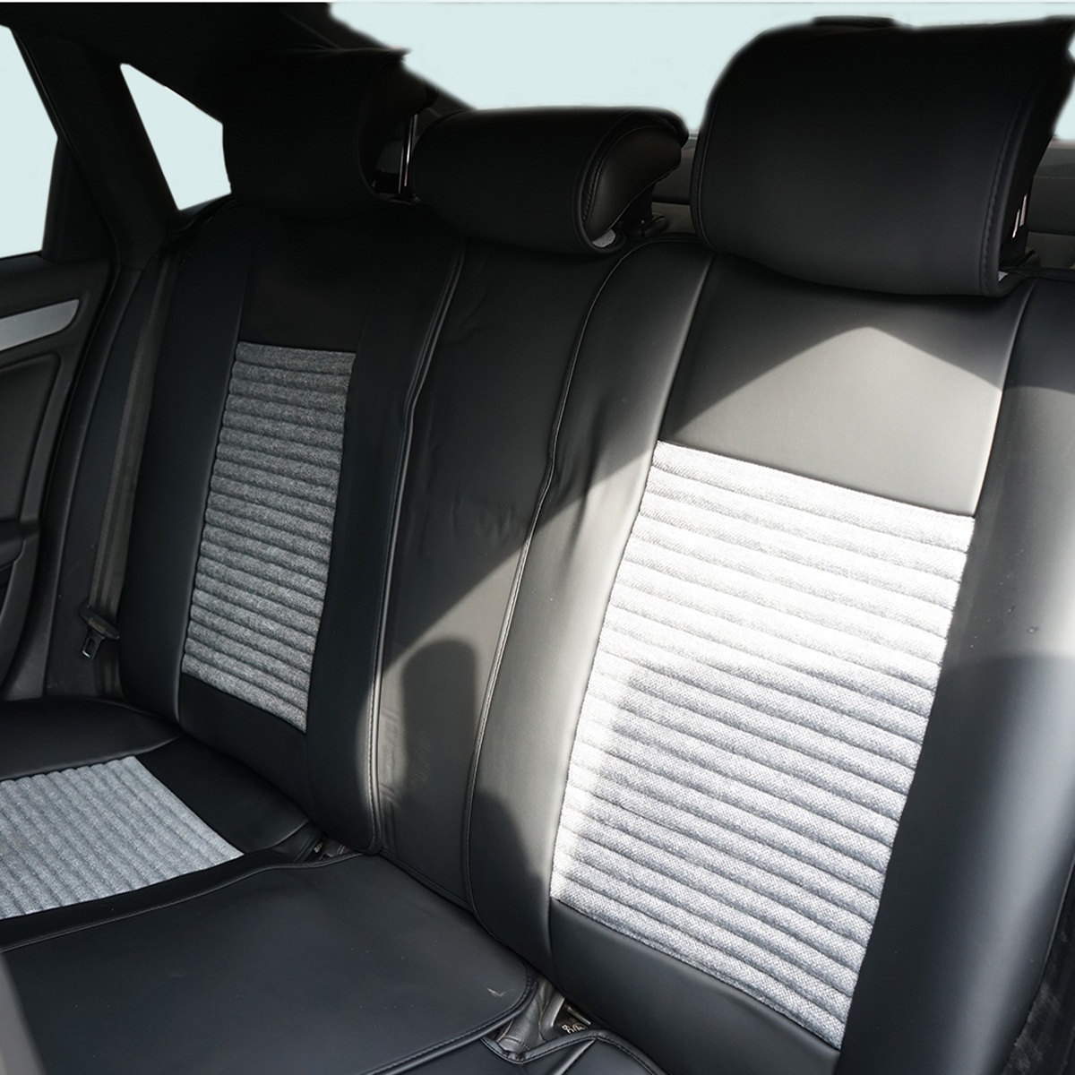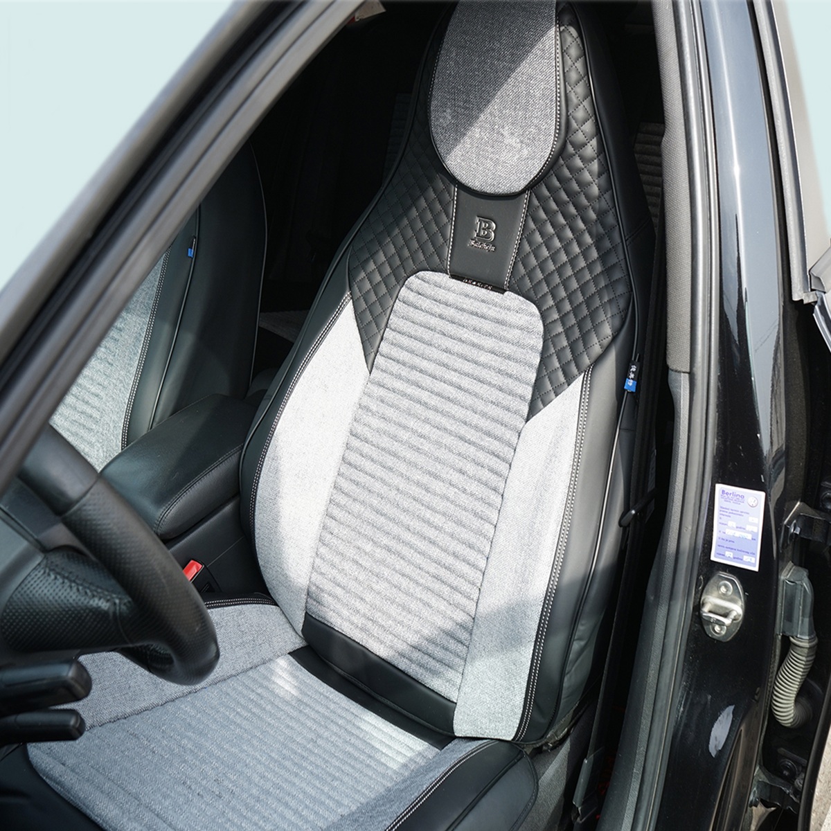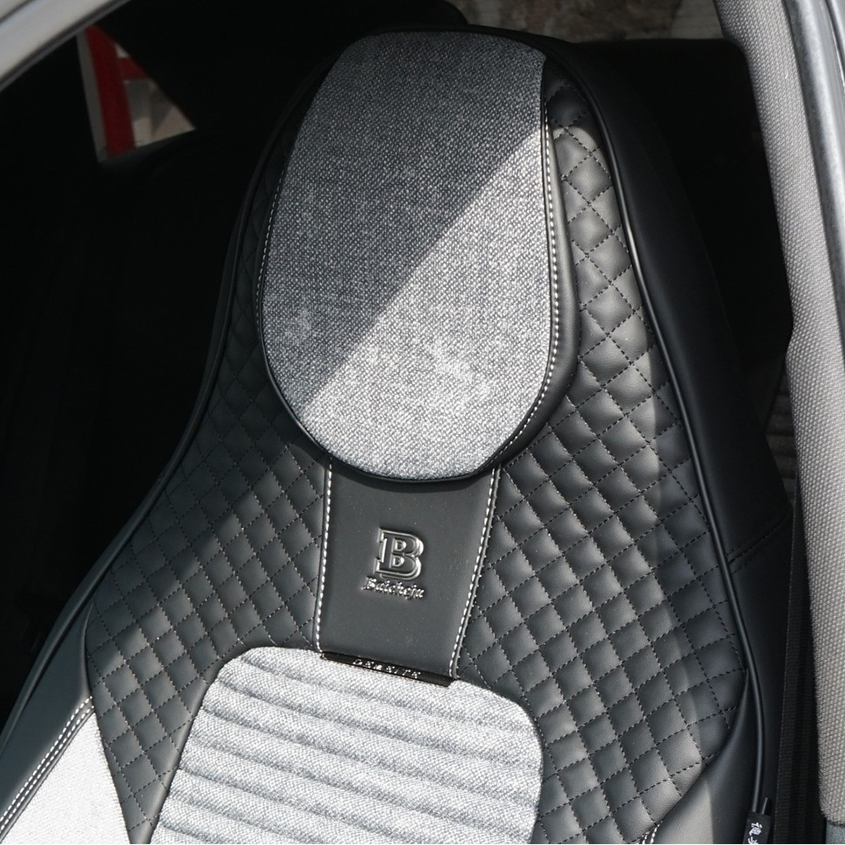 Set huse scaune auto Premium, model BLAZE Prime, design Sportiv, universale, ergonomice, Piele Ecologica cu insertii textile, culoare Negru/Gri