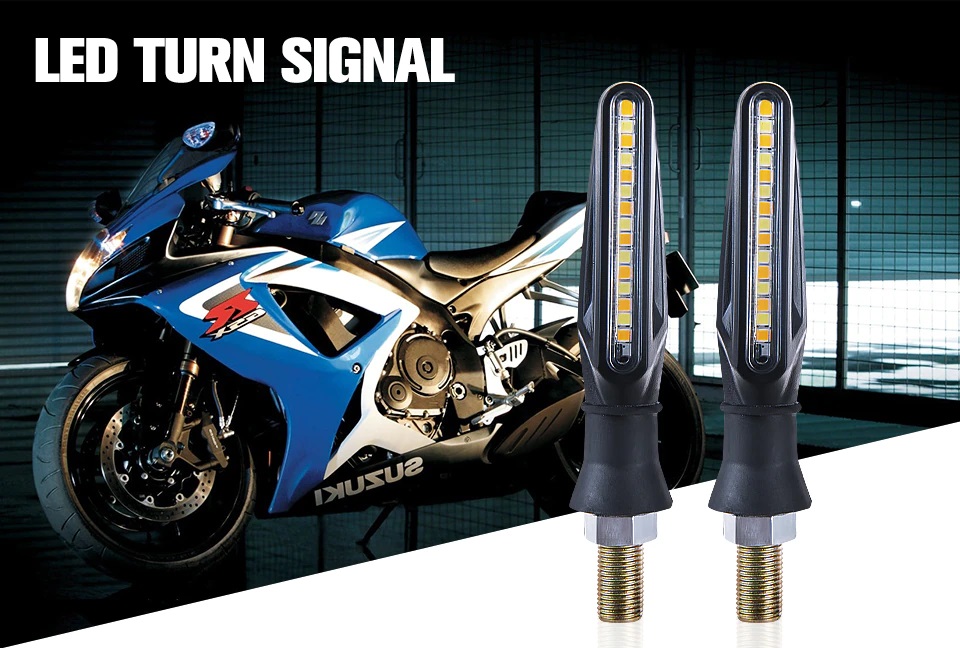 Indicatoare LED universale pentru vehicule cu două roți. Accesoriul perfect pentru motocicleta ta. LED-urile dau o lumină portocalie puternică – îmbunătățind considerabil vizibilitatea. Tranziția caracteristică, dinamică a LED-ului în timpul manevrei sporește impresia estetică. Se potrivesc tuturor motocicletelor cu filet M10 standard.