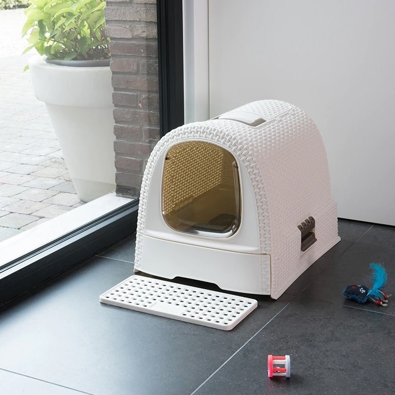 Litiera cu acoperis, usa batanta, filtru, crem, 51x38x40 cm, Strend Pro