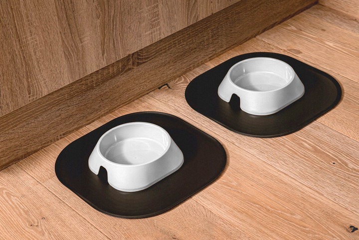 Castron, bol, pentru caine, pisica, suporti antiderapanti, PET reciclat, alb, marime S, 200 ml, 13x13x3.6 cm