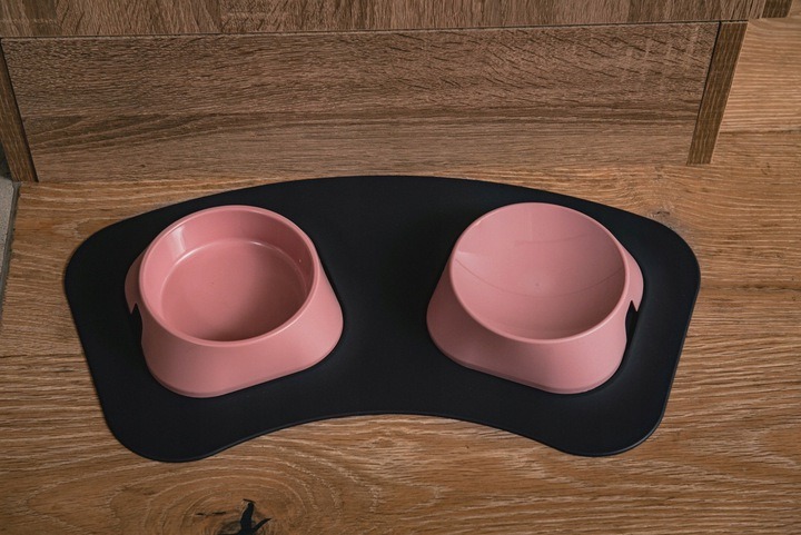Castron, bol, pentru caine, pisica, suporti antiderapanti, PET reciclat, roz, marime M, 400 ml, 17.2×17.2×4.8 cm