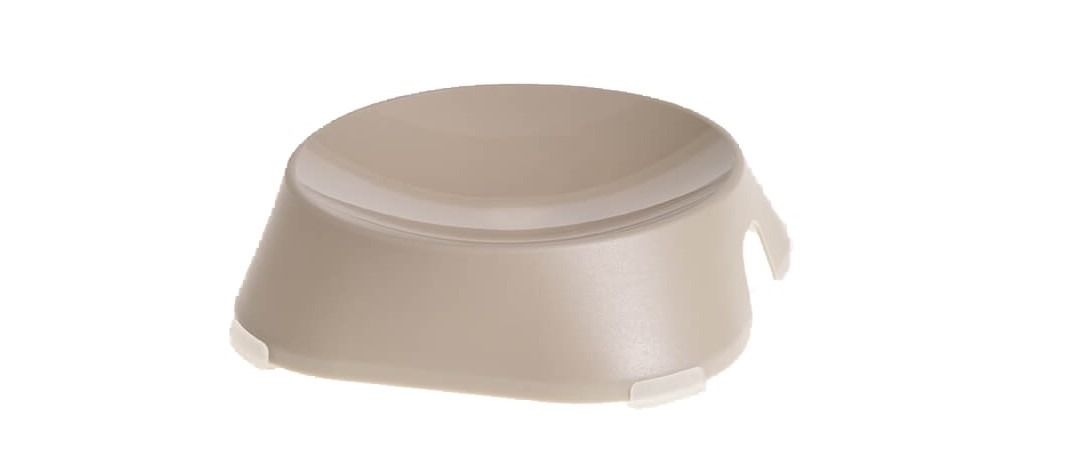 Castron, bol, plat, pentru caine, pisica, suporti antiderapanti, PET reciclat, bej, 13x13x3.6 cm