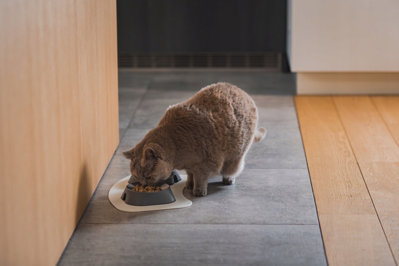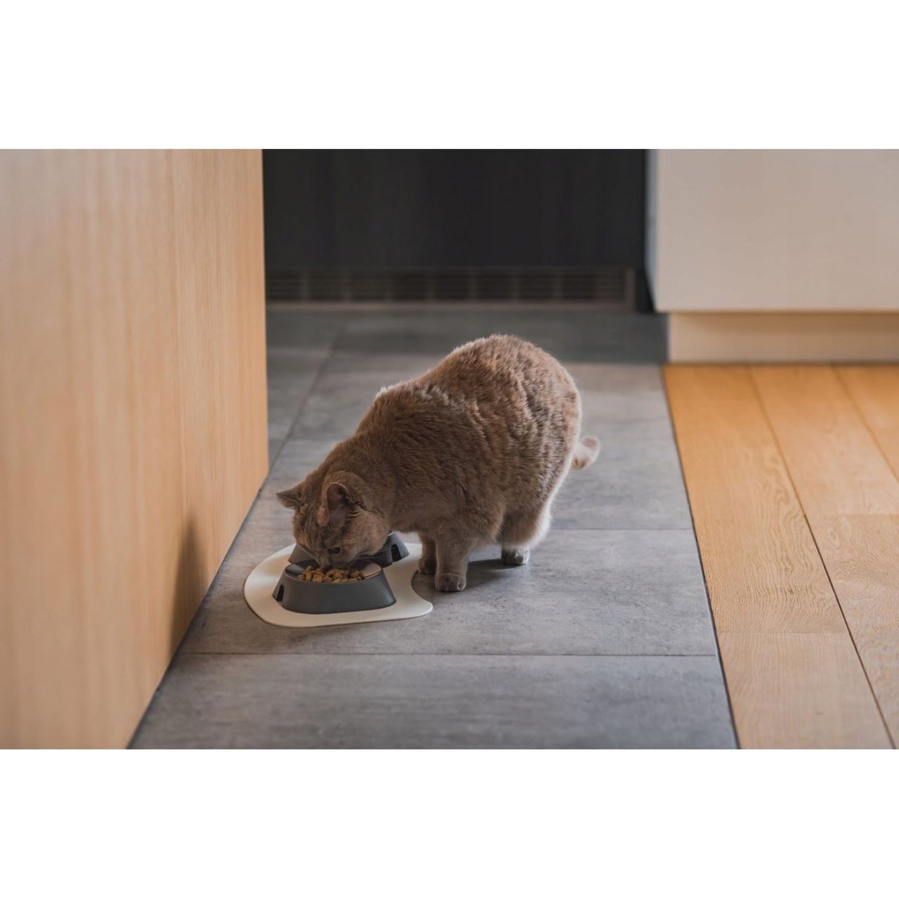 Castron, bol, plat, pentru caine, pisica, suporti antiderapanti, PET reciclat, gri inchis, 13x13x3.6 cm