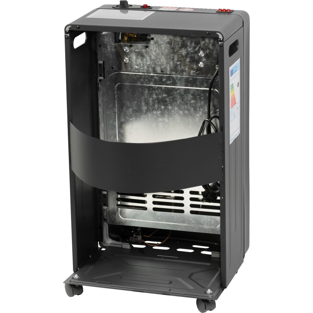 - Datorita combinatiei dintre un arzator ceramic pe gaz cu o putere de pana la 4.2 kW si un ventilator electric cu incalzire suplimentara de 1.2 kW , acest incalzitor ofera caldura si confort in spatiile interioare.