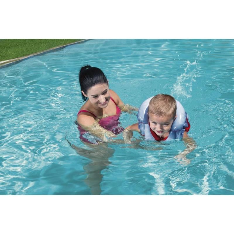 Cu 2 catarame reglabile cu eliberare rapida si un guler gonflabil, copiilor le va placea sa inoate in apa si mai ales, sa se simta in siguranta.