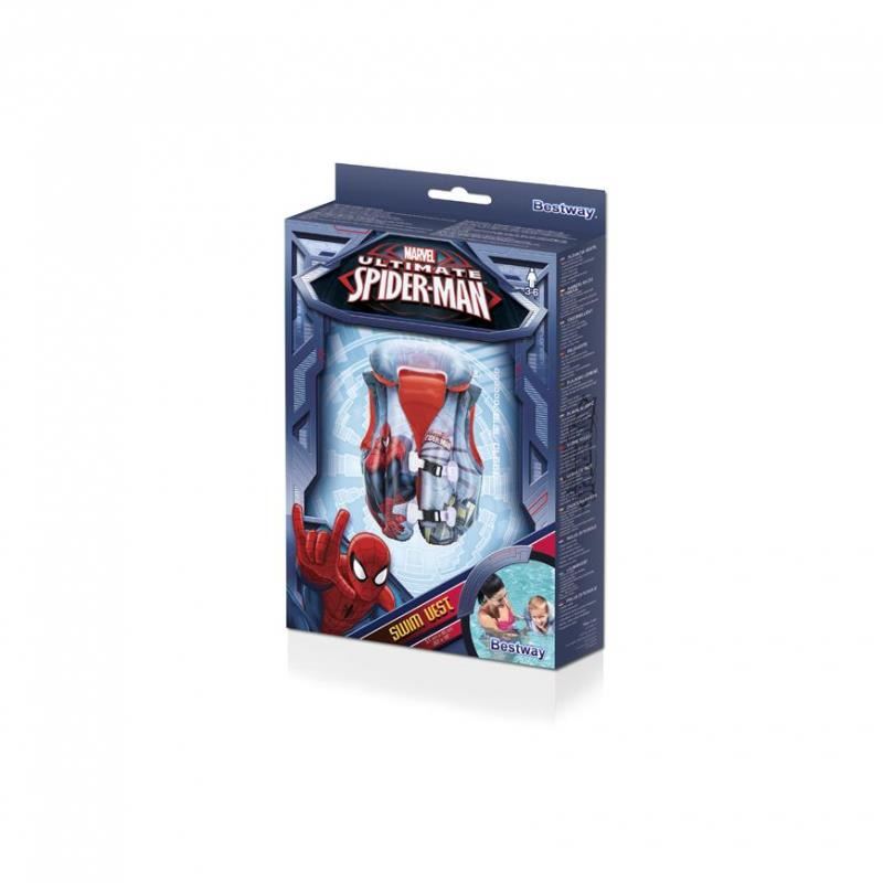 Vesta gonflabila pentru copii, model Spiderman, albastru, 51×46 cm, Bestway