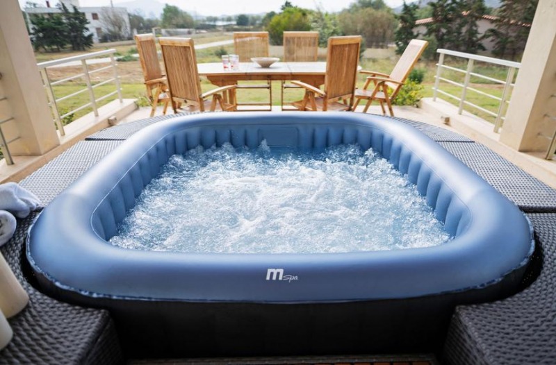 - Nu te vei lupta cu umflarea fizica a piscinei! Doar apasa butonul de pe telecomanda si cada cu hidromasaj se va umfla singura in 3 minute.