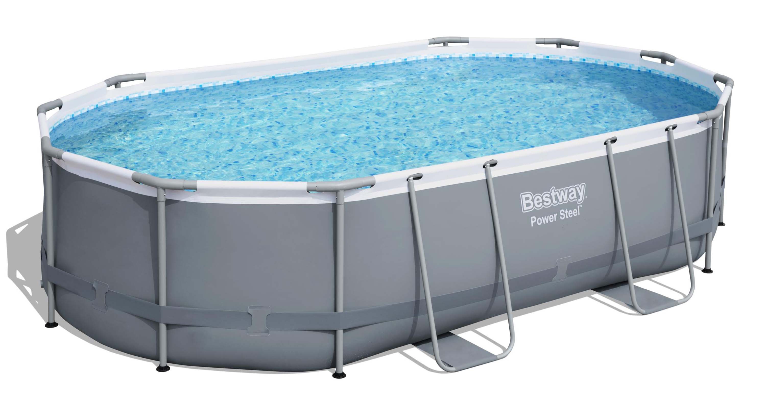 Piscina structura metalica, ovala, cu filtru, pompa, scara, dozator, prelata acoperire, gri, 488x305x107 cm, Bestway Power Steel