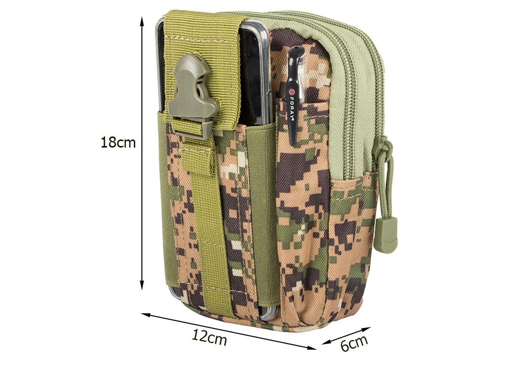 Borseta tactica Molle, Verk Group, camuflaj digital, impermeabila, 6 compartimente, cu loc pentru telefon, 12x6x18 cm