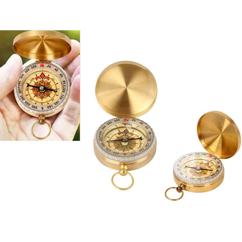 - O busola din cupru cu capac blocabil ne va arata pozitia si directia corecta. Este un accesoriu mic si elegant, indispensabil pentru orientare in natura. Carcasa ei este rezistenta la apa. Are cadran fluorescent, astfel incat sa putem citi directiile corecte chiar si in conditii de noapte. Busola are, de asemenea si un pandantiv la care poti atasa un snur sau un lant pentru a o purta la gat sau a o atasa la cureaua pantalonilor.