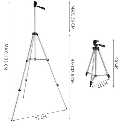 - dimensiuni trepied (inaltime min/max): 45-133 cm