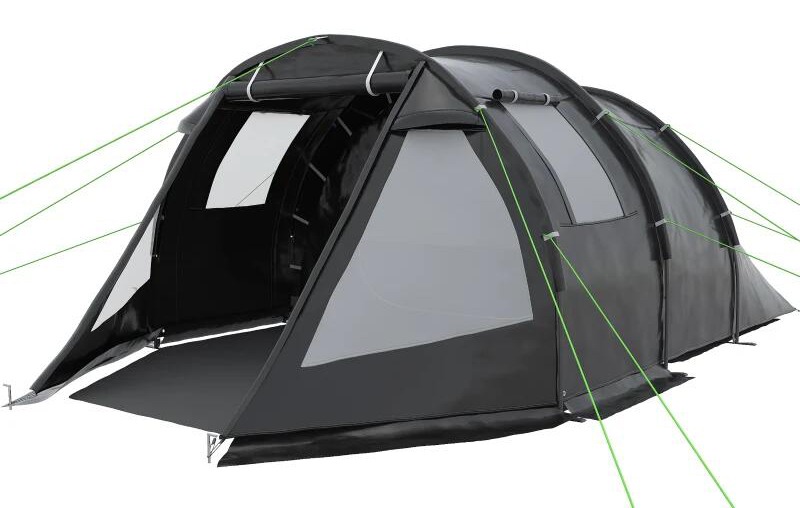 Cort camping, 3-4 persoane, impermeabil, cu vestibul, negru, 475x264x172 cm