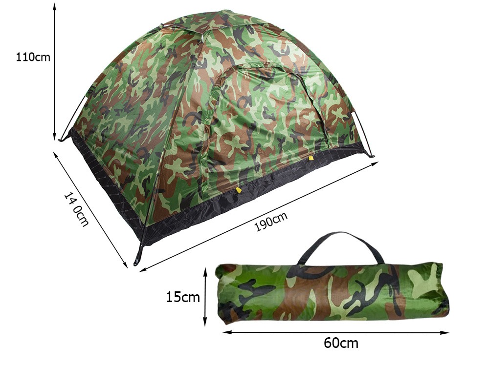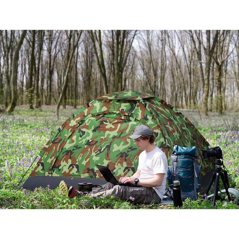 Cort camping, Verk Group, 2 persoane, impermeabil, cu husa, camuflaj, 190x140x110 cm