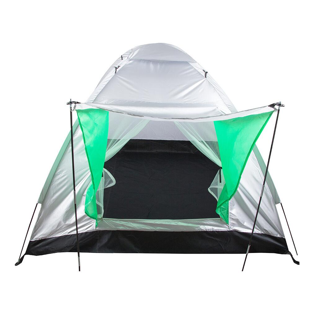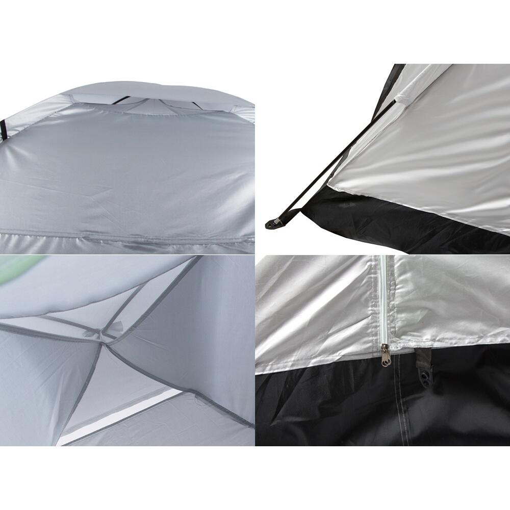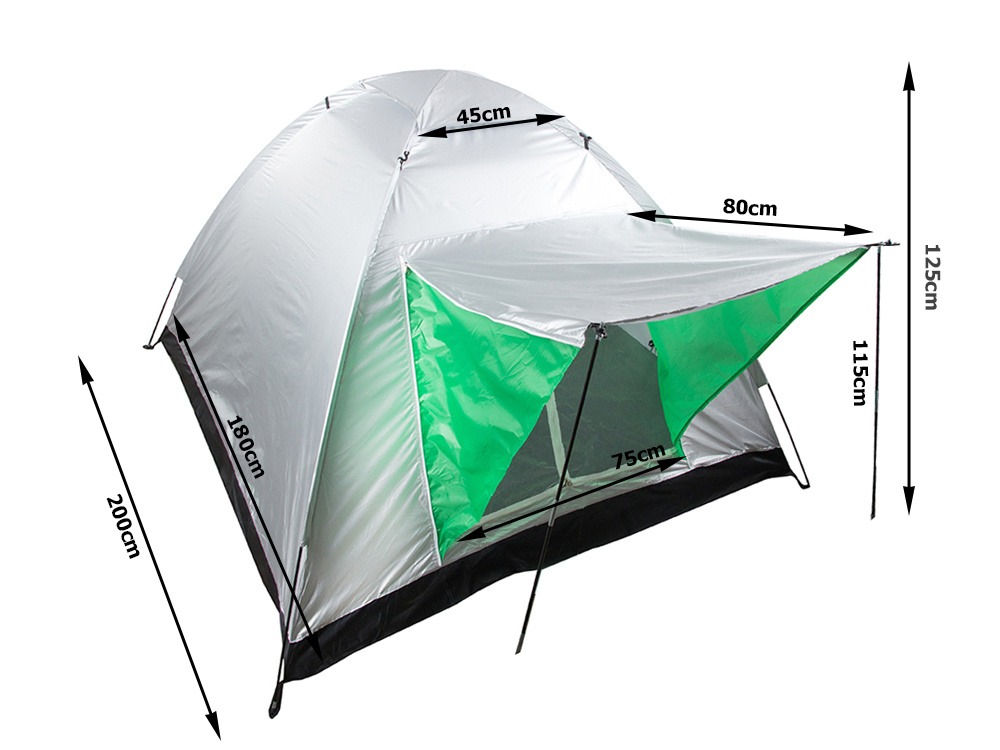 - Amenajarea cortului este extrem de usoara. Pur si simplu pliati cei doi stalpi ai ramei si apoi trageti capacul cortului peste ei. Exista, de asemenea, cuie incluse pentru a fixa cortul de pamant.