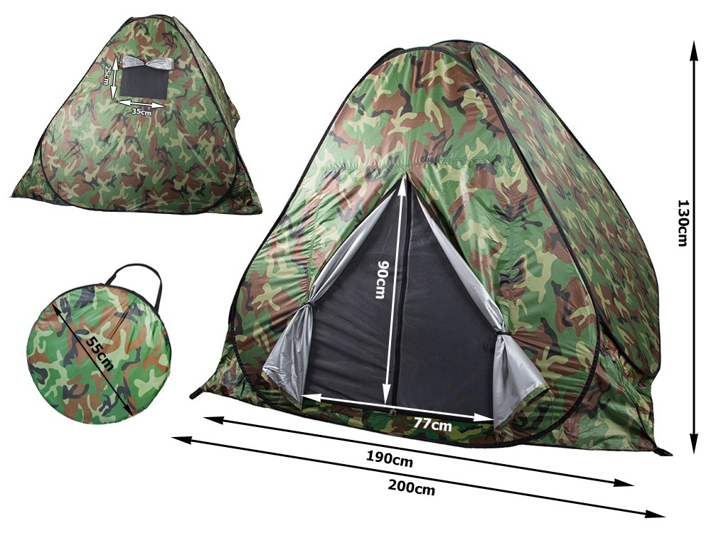 Cort camping, Verk Group, 3-4 persoane, impermeabil, cu husa, camuflaj, 200x200x130 cm