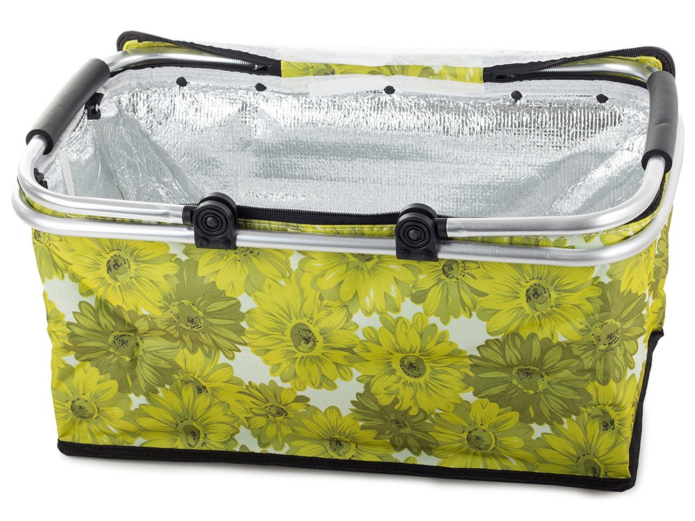 Geanta/cos picnic, termoizolanta, Verk Group, galben, model floral, 48x28x22 cm