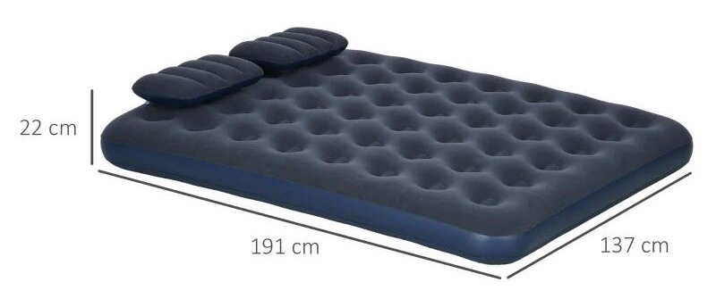Saltea camping, 2 persoane, gonflabila, cu pompa manuala inclusa, PVC, bluemarin, 193x137x22 cm