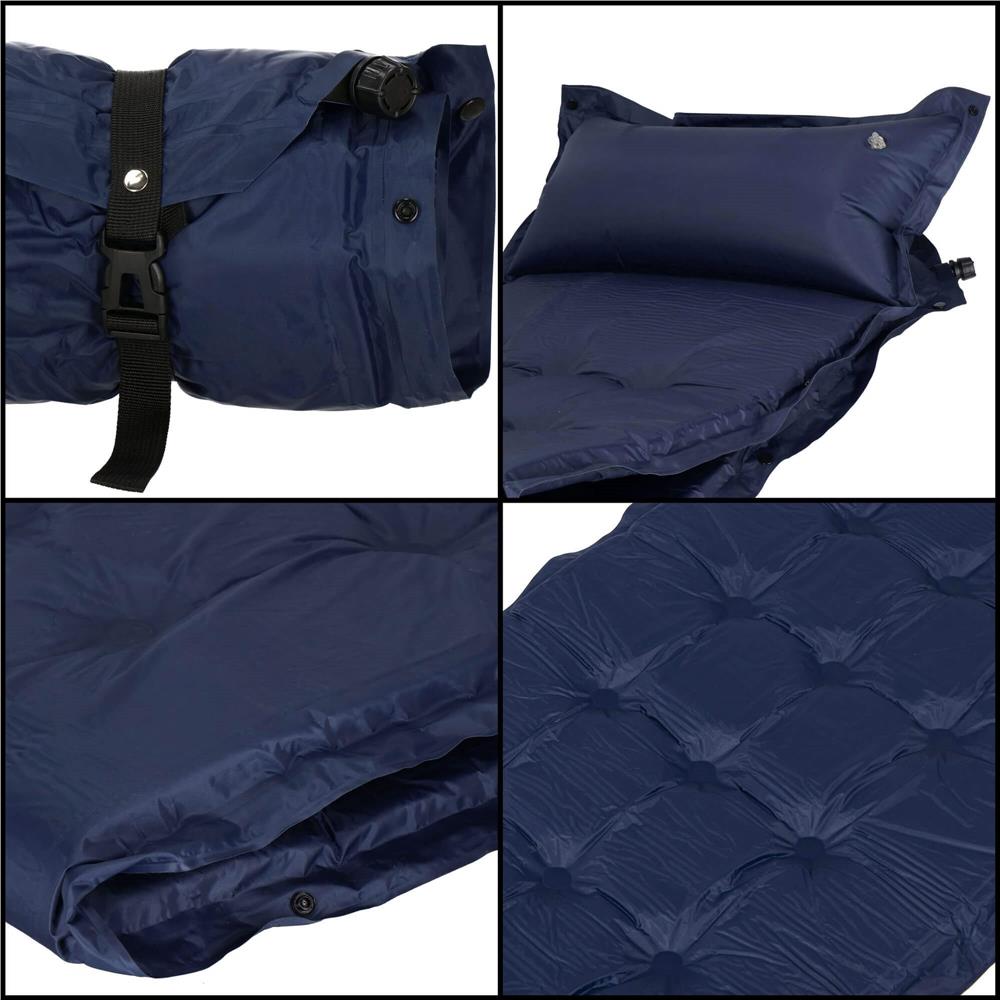 Saltea camping auto-gonflabila, matlasata, poliester si spuma PU, albastru, 193×68 cm, Springos