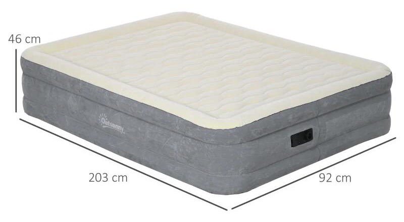Saltea camping, gonflabila, cu pompa electrica incorporata, 220-240 V, PVC, gri si bej, 203x92x46 cm