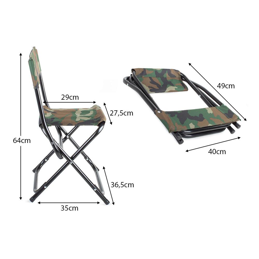 Scaun pliabil pentru camping, gradina, pescuit, Verk Group, model camuflaj, 36.5x29x64 cm