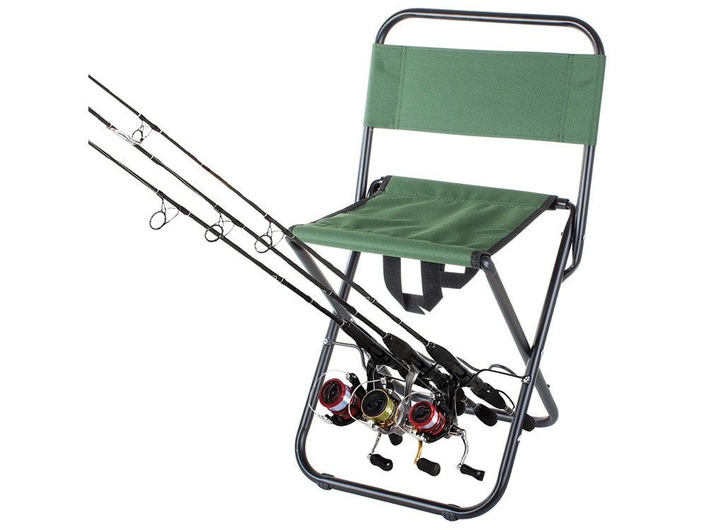 Scaun pliabil pentru pescuit, Verk Group, cu suport undita, verde, 35x27x60 cm