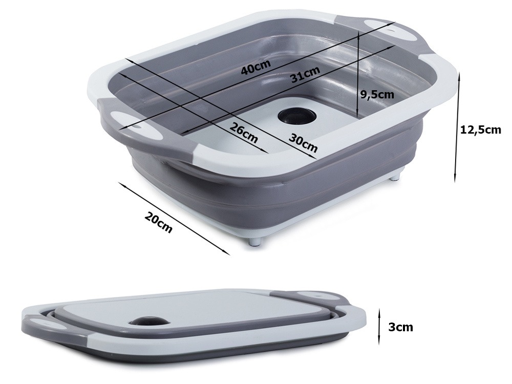 Uscator, scurgator pentru camping, Verk Group, silicon, pliabil, gri, 5 L, 40x30x12.5 cm