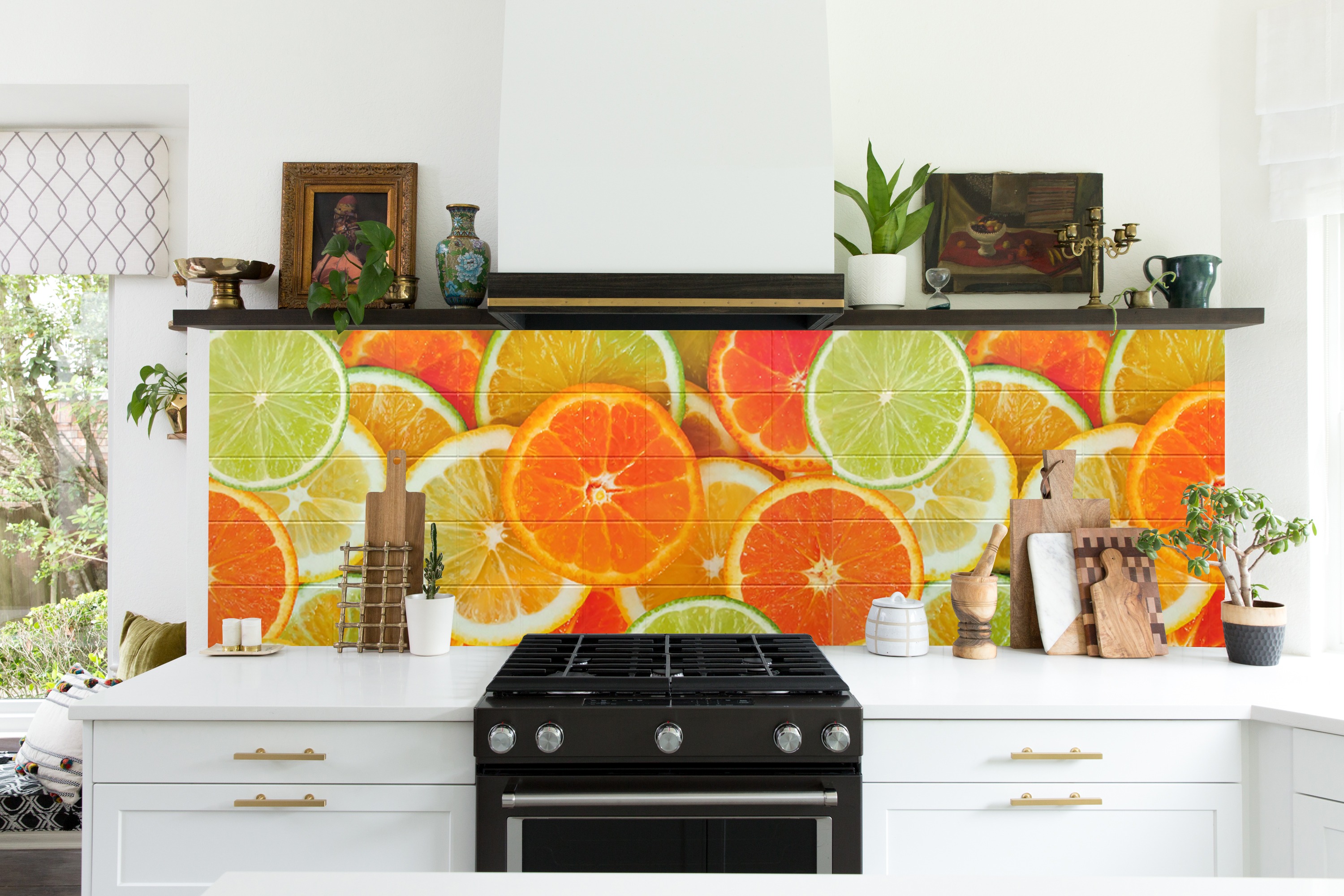 Panou decorativ, PVC, model citrice, portocaliu, 96×48.5cm
