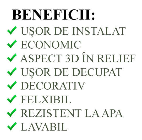 Panoul decorativ poate fi utilizat pentru finisarea peretilor interiori din locuinta, in holuri, bai, dormitoare sau balcoane. Lipirea panoului decorativ din PVC pe un perete va transforma rapid aspectul acestuia, realizand o amenajare moderna si eleganta. Panourile decorative din PVC sunt impermeabile, rezistente la umezeala si usor de curatat, motiv pentru care sunt ideale si pentru incaperi precum bai, garaje, case de vara. Nu aveti nevoie de instrumente profesionale sau specializate, toata lumea este capabila sa-si instaleze singuri aceste panouri.