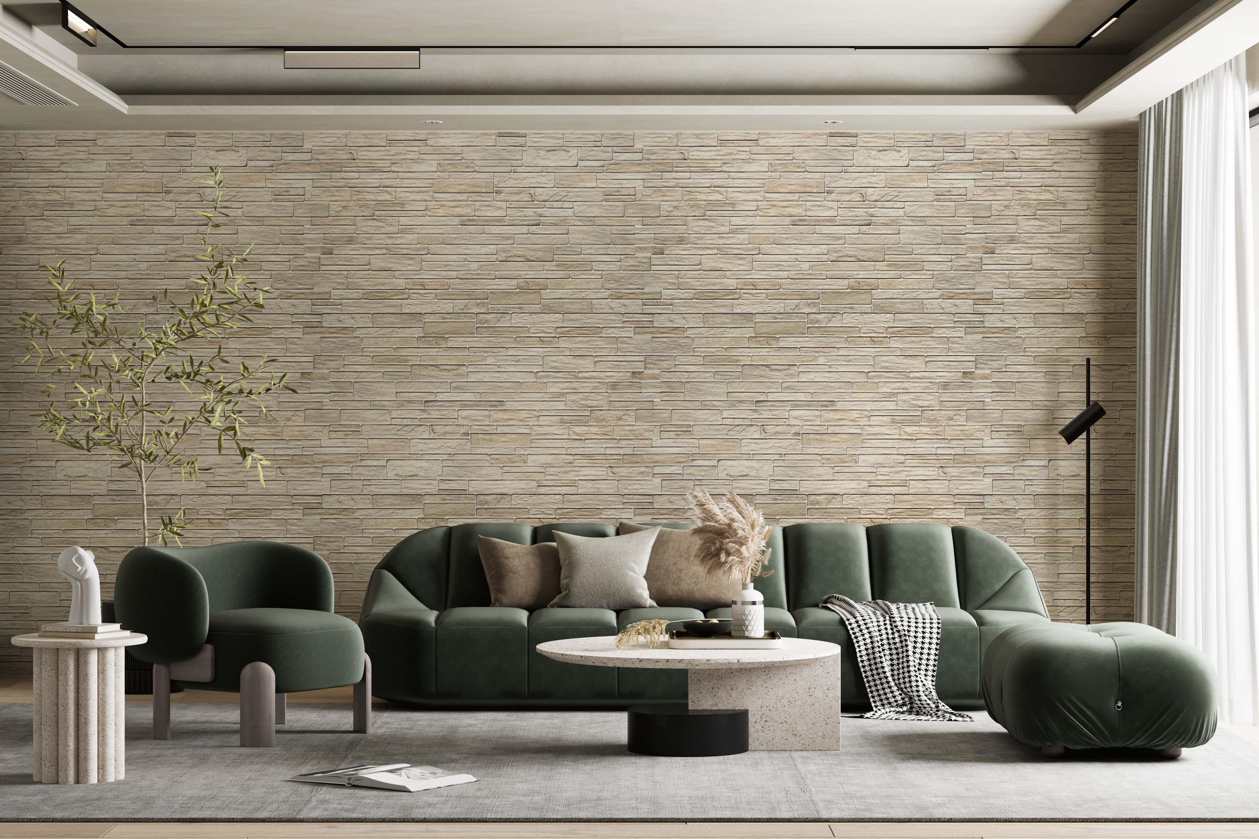 Panou decorativ, PVC, model piatra 3D, nuante crem, 96×48.5 cm