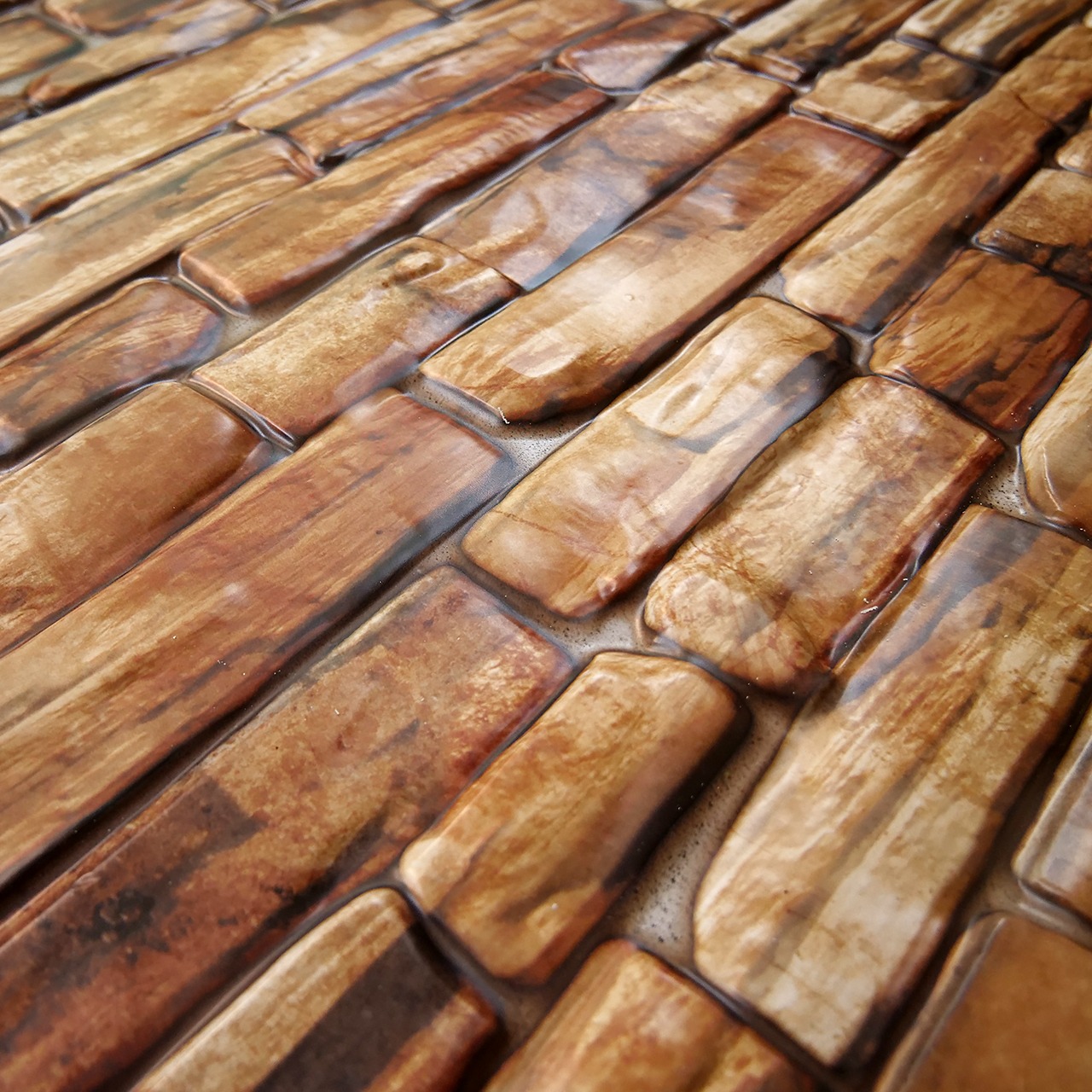 Panou decorativ, PVC, model piatra 3D, nuante maro, 96×48.5cm