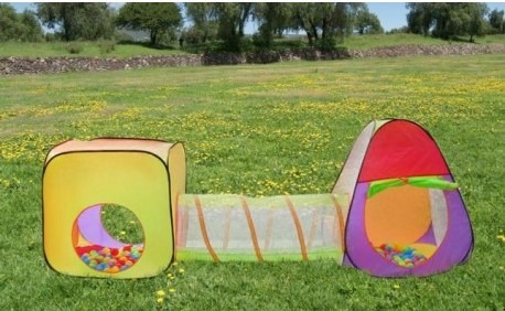 - setul include: cort tip igloo, cort tip cub, tunel, 200 de bile, husa