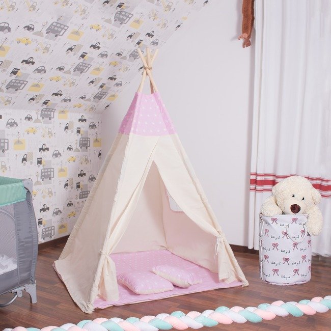 Cort de joaca pentru copii, stil indian, roz cu stele, 120x100x160 cm, Springos