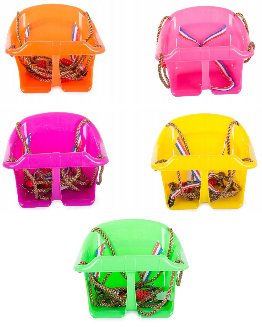 - Poate fi atarnat pe un copac sau pe o structura speciala de pe locul de joaca. Scaunul are hamuri care protejeaza copilul de caderea sau alunecarea din leagan.