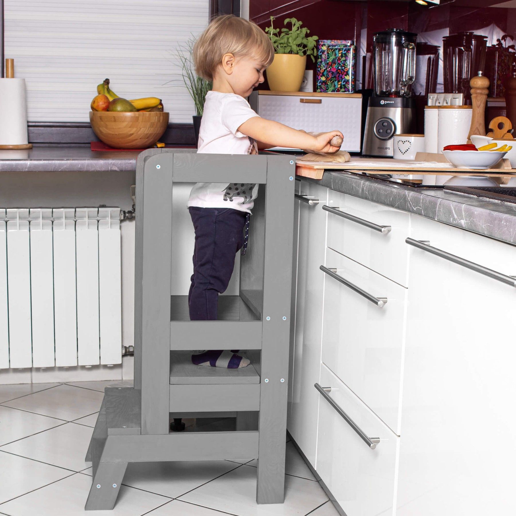 Inaltator multifunctional/ajutor de bucatarie pentru copii, ajustabil, lemn, gri, 39x52x90 cm, Springos