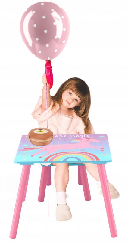 Set mobilier copii, model unicorn si curcubeu, roz, lemn + MDF, 50x50x42 cm, Chomik