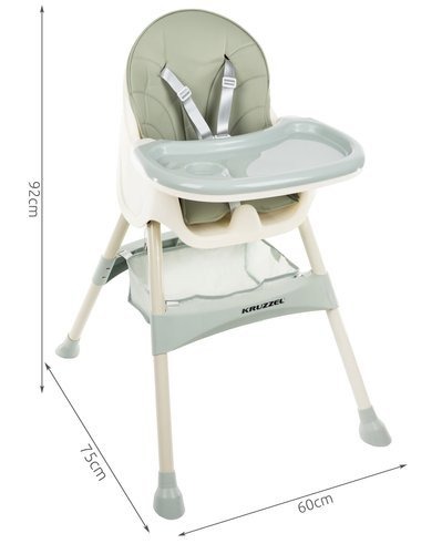 Scaun de masa pentru bebelusi, 3 in 1, verde, max 20 kg, 60x75x92 cm, Kruzzel