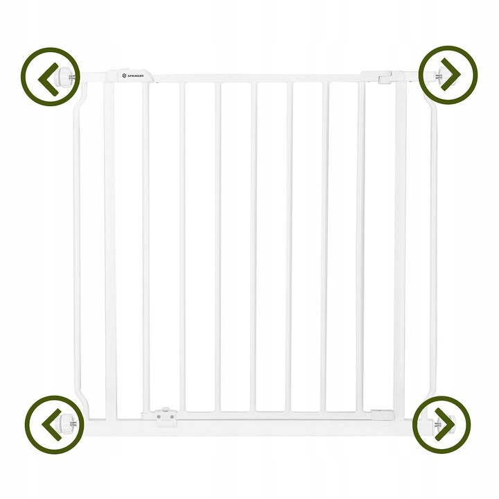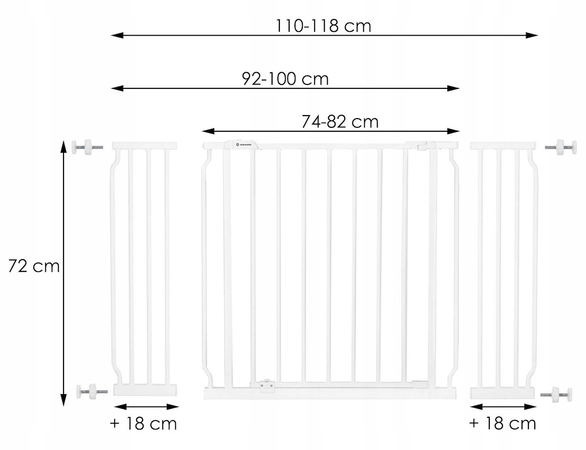 Poarta, grilaj, de siguranta, protectie copii, inchidere automata, cu extensie 18+18 cm, metalica, alb, 74/82×72 cm, Springos