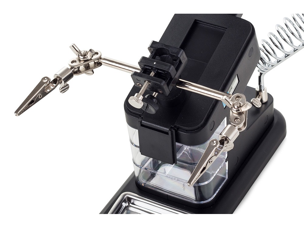 Suport universal pentru lipit cu lupa, Verk Group, cu sertare, LED, USB, 2 brate tip clema, 3xAAA, marire 3x, 4.5x, 25x