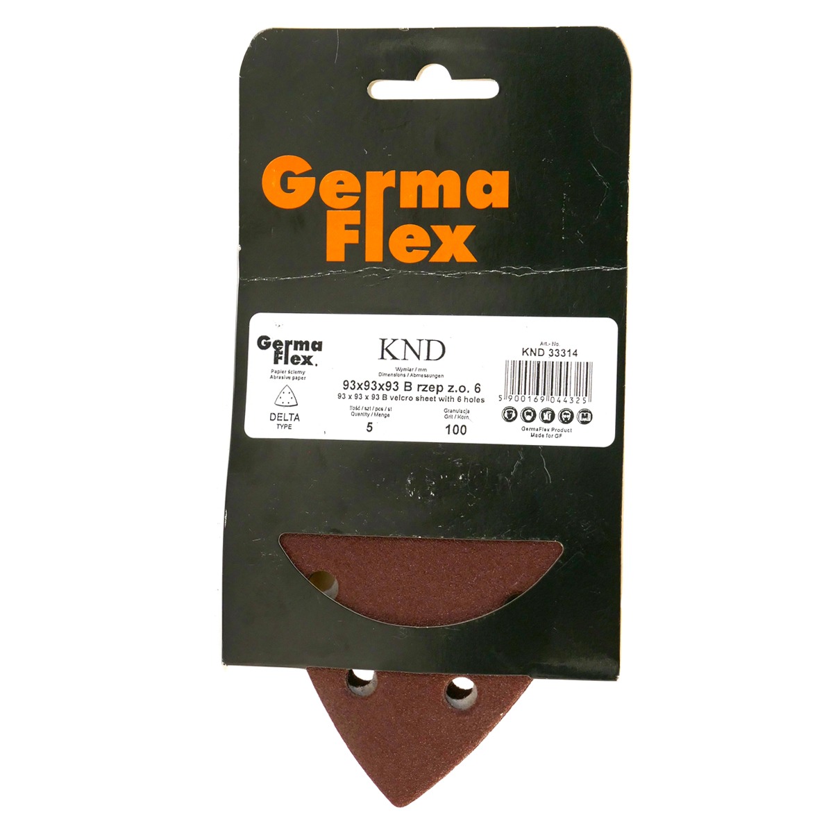 Set 5 abrazive cu scai cu gauri triunghi, P180, 93x93x93 mm, Germa Flex