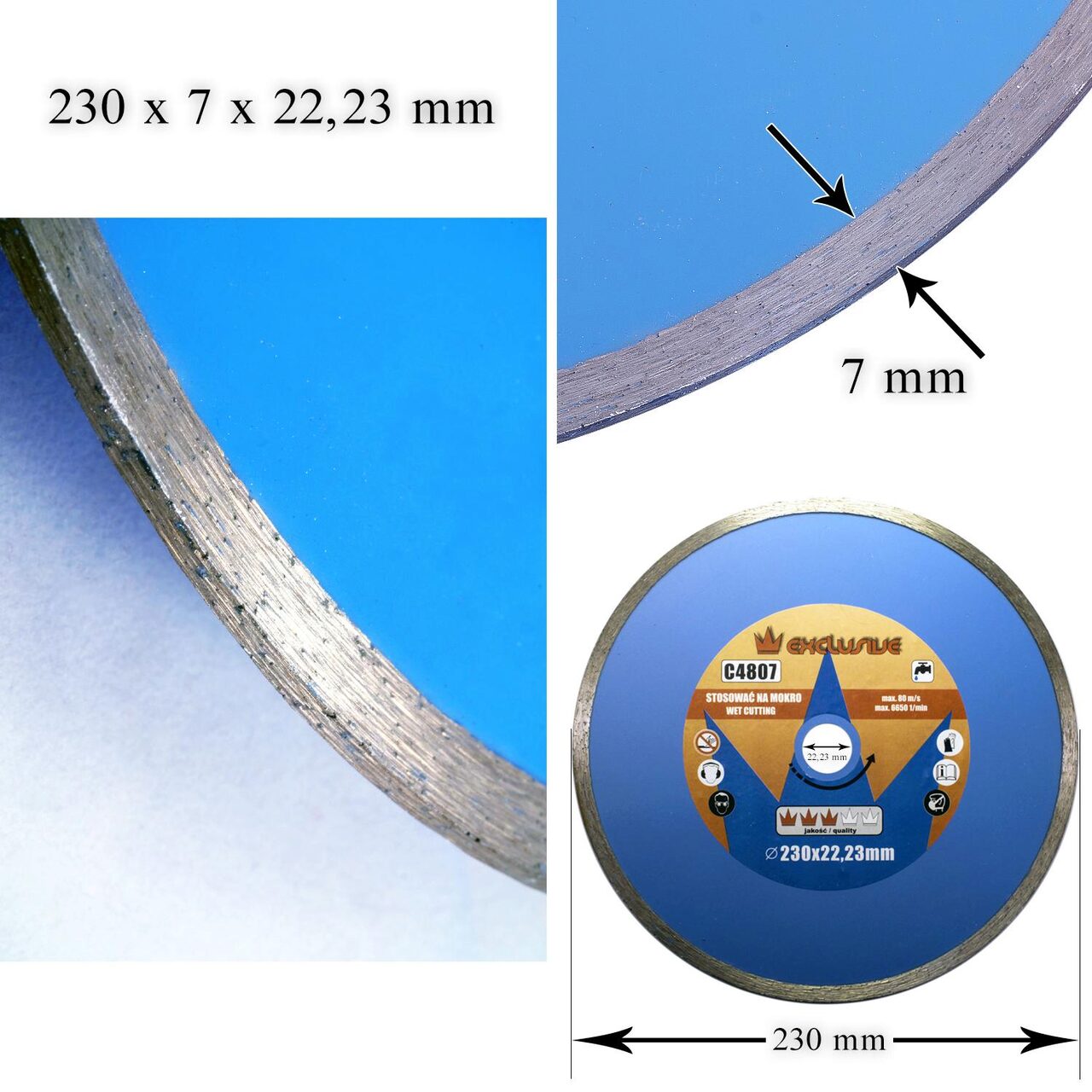 Diametrul discului este de 230 mm, grosimea este de 2,8 mm, diametrul interior este de 22,23 mm, iar suprafata diamantata este de 7 mm.