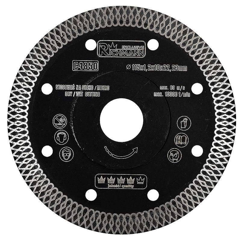 Set 10 discuri diamantate turbo subtire, placi ceramice, taiere umeda si uscata, 115 mm/22.23 mm, Richmann Exclusive