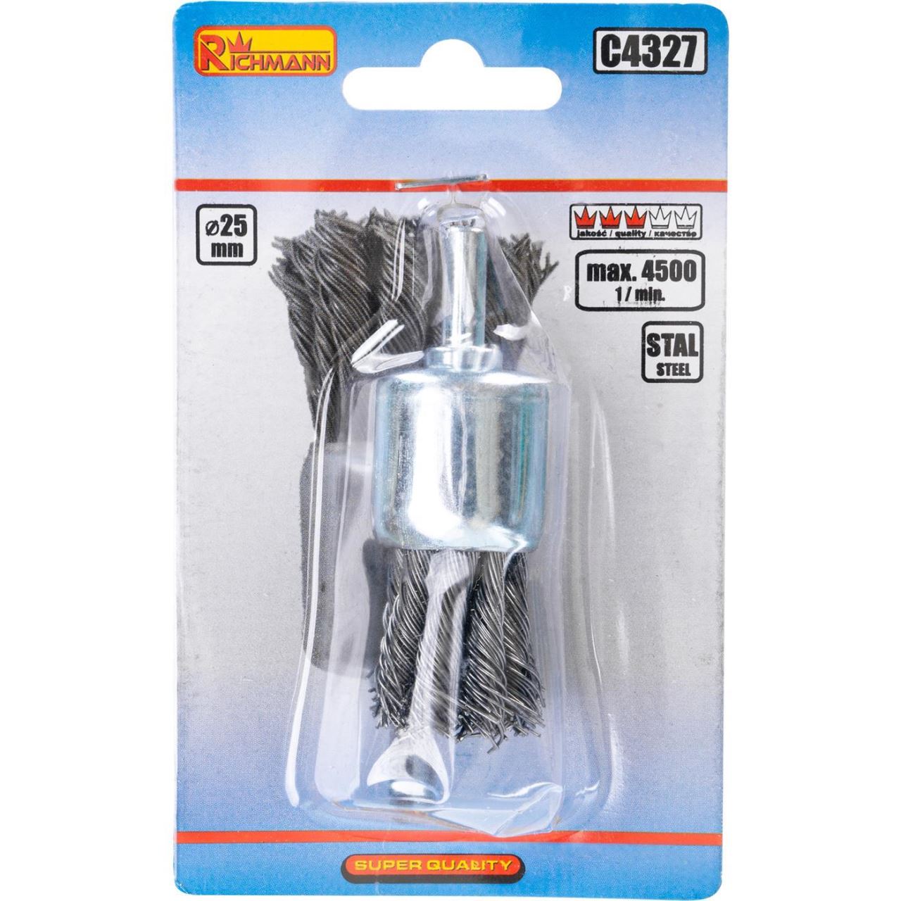 Perie sarma otel, tip cupa, cu toroane, tija, 25 mm, Richmann