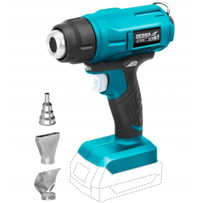 Pistol aer cald, cu acumulator 2 Ah, incarcator 18V Li-ion, 3 duze, SAS+ALL, Dedra