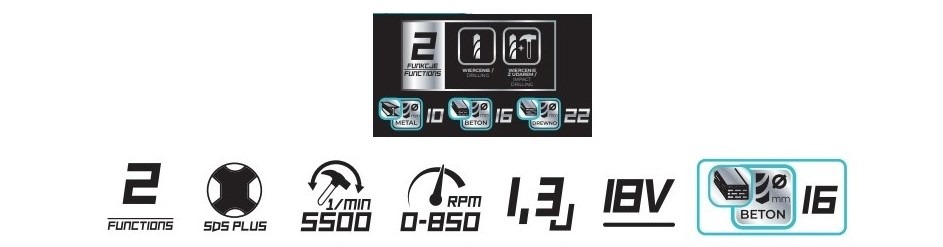 Ciocanul rotopercutor are o energie de impact de 1,3 J, care in combinatie cu frecventa inalta de 5500 lovituri/ min este suficienta pentru lucrari de renovare si finisare.