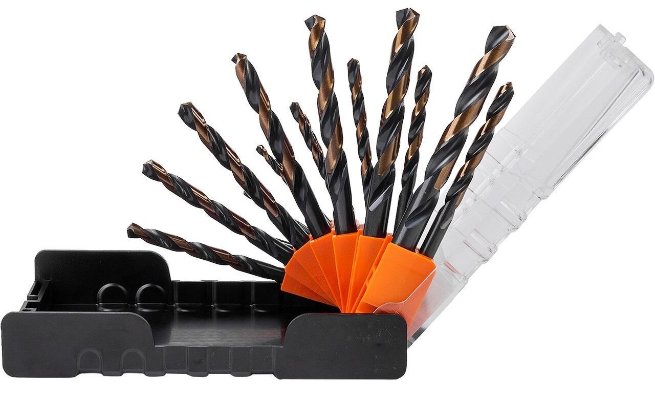 Setul este plasat intr-o caseta compozita cu un spatiu ordonat si desemnat pentru fiecare dimensiune de burghiu.