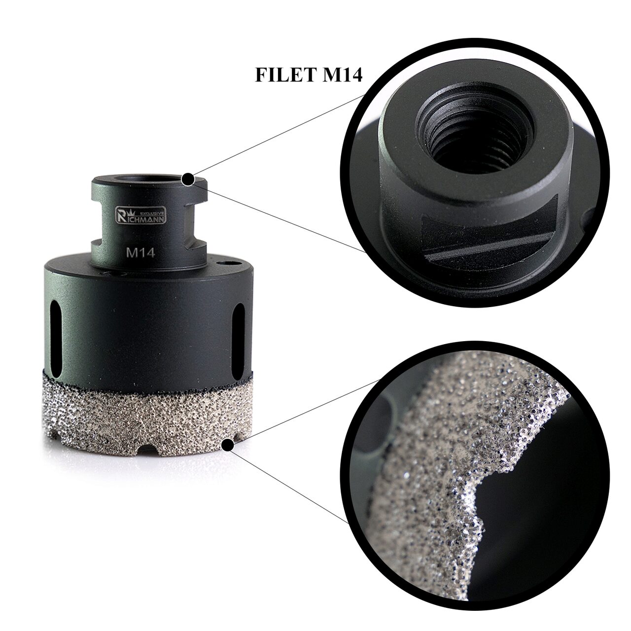 Cu carotete diamantate M14 vacuum brazate poti obtine o gaura CURATA si PRECISA fara margini sparte.