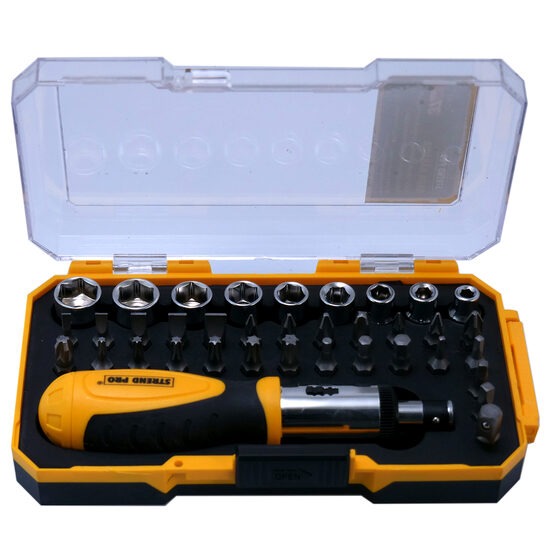 Set varfuri, biti, cap tubular cu surubelnita, 37 buc, 25 mm, Strend Pro