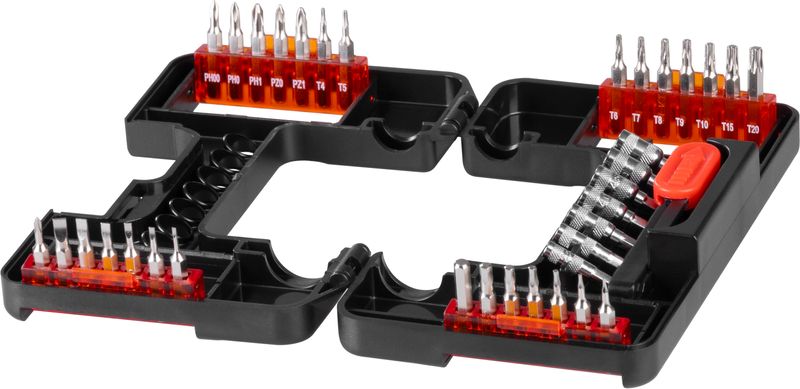 Set varfuri, biti, cu surubelnita, 37 buc, Torx, plate, Phillips, Strend Pro